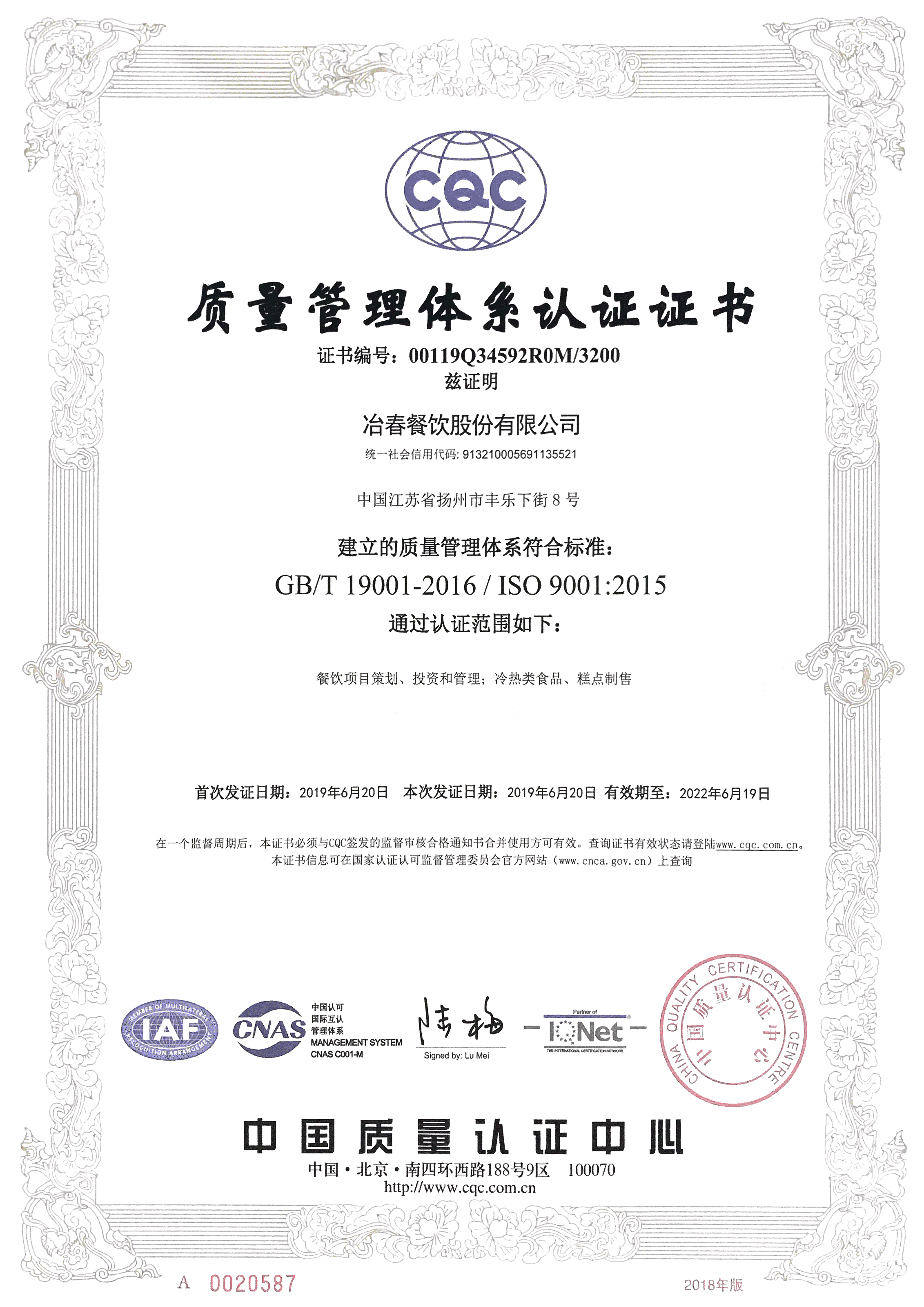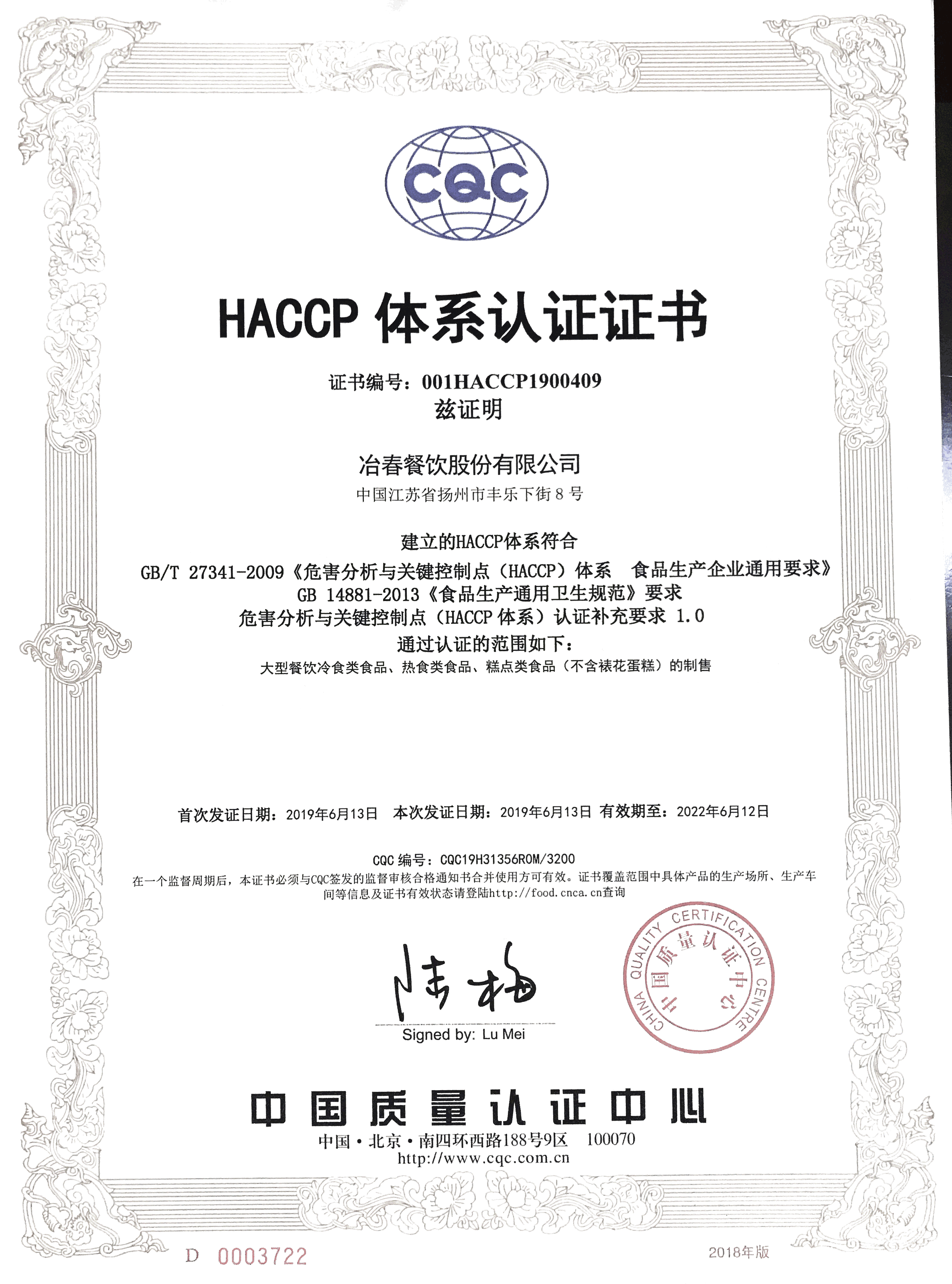 冶春餐飲順利通過HACCP體系認(rèn)證、ISO9001體系認(rèn)證