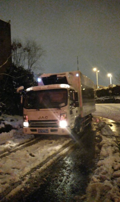 1月4日,適逢市兩會隆重召開,揚城迎來了2018年的第一場雪。凌晨積雪厚度就已達10厘米以上。漫天飛雪,美景醉人。但是,奮戰(zhàn)在一線的冶春食品公司的駕駛員,他們無心看風(fēng)景,因為他們明白這美麗風(fēng)景的背后,是惡劣行駛條件,是復(fù)雜多變路況,是不得而知的突發(fā)事件。