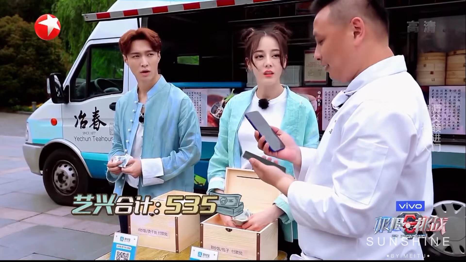 “我教張藝興和迪麗熱巴做揚(yáng)州炒飯和燙干絲,我們白案師傅杭恒谷教他們倆做了細(xì)沙包子,就是節(jié)目中說(shuō)的梅花包子?!币贝?/span>廚師長(zhǎng)耿濤作為節(jié)目中的師傅和裁判,全程參與了節(jié)目拍攝先從長(zhǎng)樂(lè)客棧挑選兩位“徒弟”,然后帶到冶春御碼頭店體驗(yàn)“揚(yáng)州三把刀”中的“廚刀”。在冶春大廚的指導(dǎo)下,張藝興和迪麗熱巴,學(xué)炒飯,捏包子,學(xué)做最地道的淮揚(yáng)菜。在完成干絲和包子的學(xué)習(xí)后,他們來(lái)到冶春平山堂店售賣(mài)制作好的冶春美食。