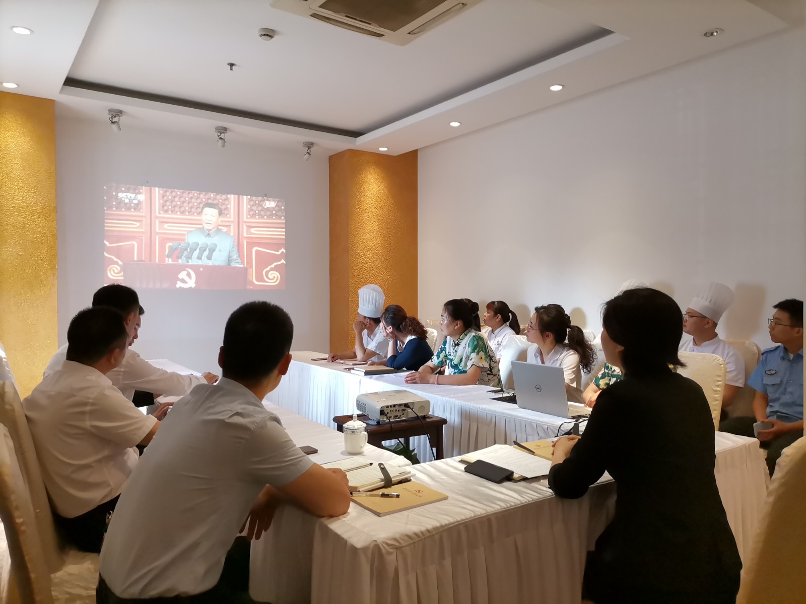 花園國際全體黨員干部、積極分子、團(tuán)員在酒店郁金香廳共同收看了“慶祝中國共產(chǎn)黨成立100周年大會”。