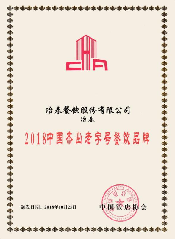 冶春餐飲獲“2018中國杰出老字號餐飲品牌”等殊榮