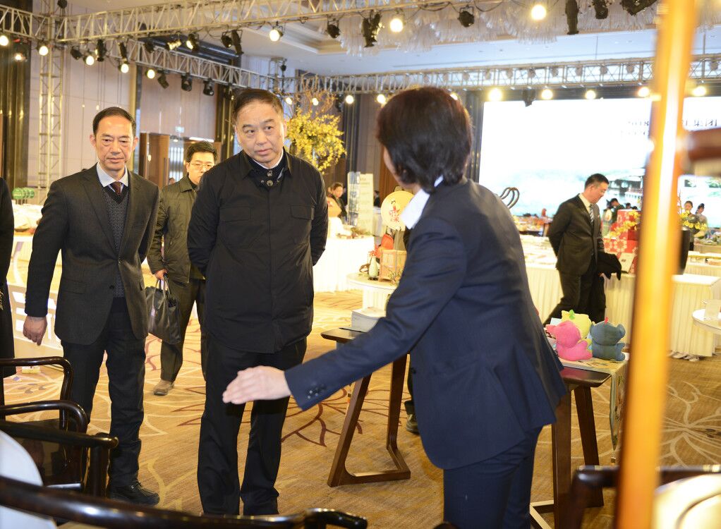 1月9日,揚州市政協(xié)主席朱民陽率隊專程到月畔灣酒店參觀2018揚子江集團春季020產(chǎn)品展。集團總經(jīng)理蔡余良等陪同參觀。