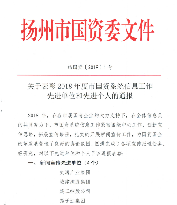 集團(tuán)榮獲2018年度市國(guó)資系統(tǒng)信息工作一等獎(jiǎng)和新聞宣傳先進(jìn)單位稱(chēng)號(hào)