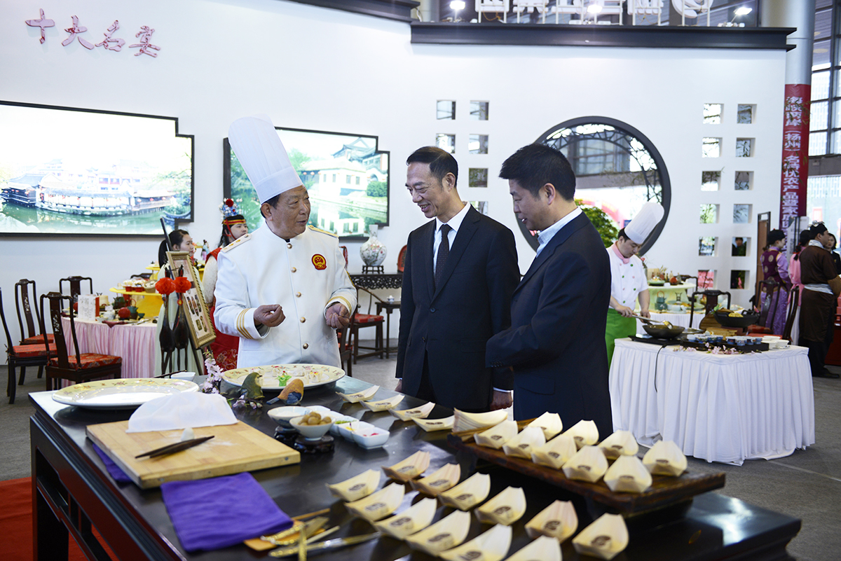 4月12日,由揚(yáng)州市政府主辦,市農(nóng)委、高郵市和市臺(tái)辦在國展中心承辦的4·18國際經(jīng)貿(mào)旅游節(jié)活動(dòng)之一——海峽兩岸(揚(yáng)州)名特優(yōu)農(nóng)產(chǎn)品暨家庭園藝博覽會(huì)正式開幕。揚(yáng)州市委副書記、市長張愛軍及江蘇省農(nóng)業(yè)委員會(huì)主任楊時(shí)云觸摸水晶球共同啟動(dòng)開幕式并致詞;省農(nóng)委、省林業(yè)局、省海洋漁業(yè)局相關(guān)領(lǐng)導(dǎo),市委、市政府、市人大、市政協(xié)分管領(lǐng)導(dǎo),市委、市政府分管秘書長,市農(nóng)委、市臺(tái)辦等相關(guān)負(fù)責(zé)人出席開幕式。集團(tuán)領(lǐng)導(dǎo)班子、置業(yè)公司、冶春食品、冶春餐飲、集團(tuán)營銷部、運(yùn)營部、辦公室等相關(guān)負(fù)責(zé)人參加展會(huì)活動(dòng)。 集團(tuán)以“活力揚(yáng)子江+”、一二三產(chǎn)業(yè)融合的主題進(jìn)行布展裝修、展示展銷,裝修風(fēng)格高端大氣,展示內(nèi)容別具一格,贏得在場領(lǐng)導(dǎo)點(diǎn)贊和市民好評(píng)。近一個(gè)月以來集團(tuán)積極部署所屬置業(yè)公司、冶春食品公司、冶春餐飲公司、會(huì)議中心、花園酒店等,推進(jìn)裝修方案設(shè)計(jì)、展示展銷內(nèi)容策劃、現(xiàn)場表演節(jié)目排練、物料制作搭建等,每個(gè)環(huán)節(jié)做細(xì)做精,展現(xiàn)國企擔(dān)當(dāng),宣傳產(chǎn)品和形象,助推全市4·18國際經(jīng)貿(mào)旅游節(jié)的勝利舉辦。本次參展重點(diǎn)展示集團(tuán)一二三產(chǎn)業(yè)融合發(fā)展的目標(biāo)規(guī)劃、實(shí)踐、產(chǎn)品和實(shí)效,一產(chǎn)為四莊村特色田園鄉(xiāng)村和登月湖項(xiàng)目,展示秀美的田園風(fēng)光和特色農(nóng)副產(chǎn)品;二產(chǎn)為冶春食品中央廚房,展示安全、綠色、規(guī)模、可溯源的生產(chǎn)模式;三產(chǎn)為集團(tuán)部分企業(yè)主題宴席,展示獨(dú)特的餐飲文化和美食體驗(yàn),包括紅樓早宴、八怪宴、紅樓宴、煙花三月宴、三頭宴和盧氏家宴。 在現(xiàn)場,大屏幕滾動(dòng)播放冶春和四莊村宣傳視頻,四莊村展示炒茶和茶藝表演,冶春食品展示各類基地食材、特色菜點(diǎn)和便捷菜,旗下賓館酒店除了宴席展示外,還有特色包點(diǎn)、繡球豆腐、揚(yáng)州炒飯的制作等,成功展示了集團(tuán)高端市場的開辟成果。(集團(tuán)辦公室) |