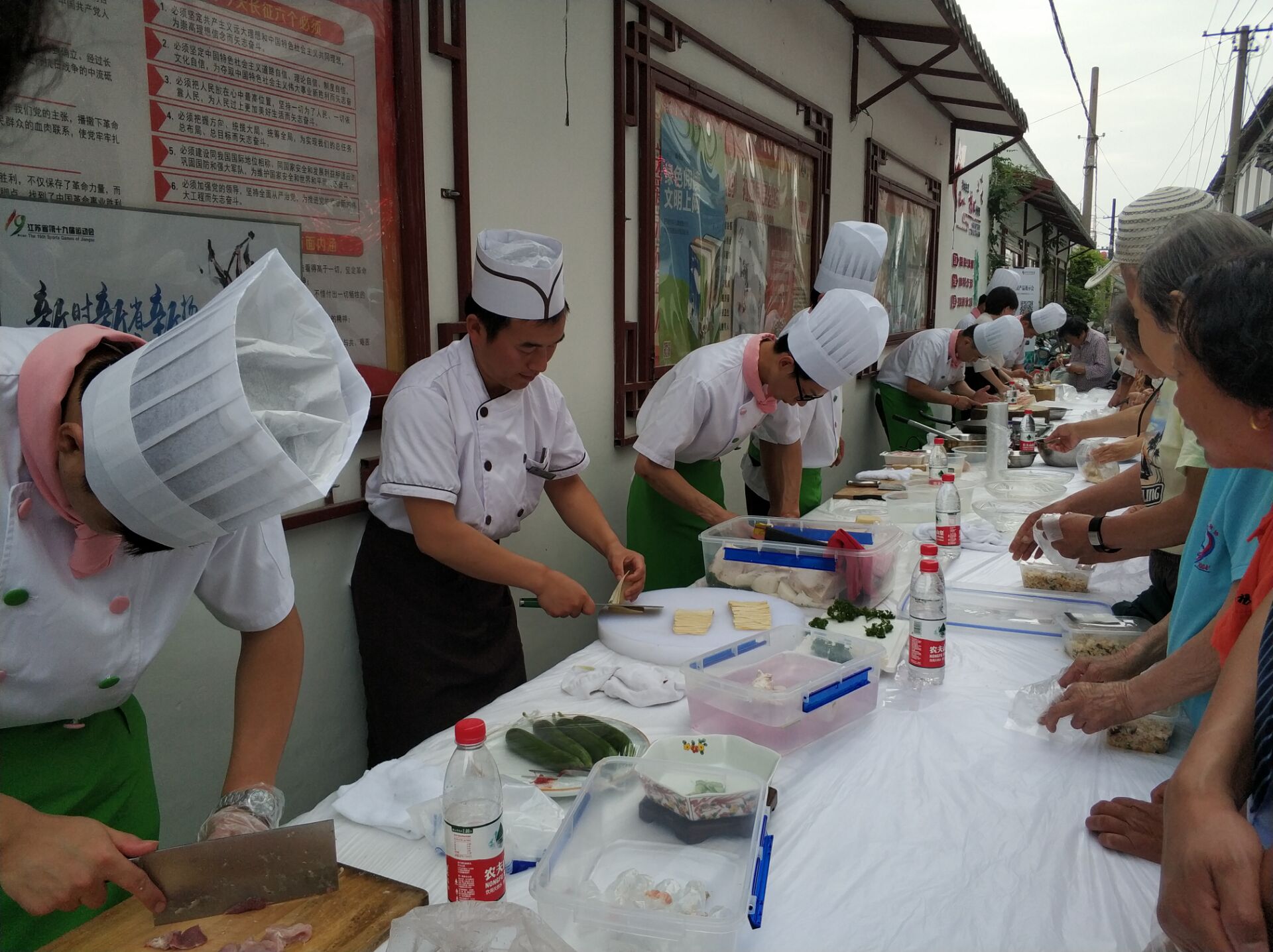同時,在市國資委機(jī)關(guān)黨支部的統(tǒng)一協(xié)調(diào)下,集團(tuán)攜西園飯店、花園國際大酒店、盧氏鹽商、萃園城市酒店、冶春餐飲、會議中心、明月湖酒店的黨員大廚們,來到常府社區(qū)為居民展示文思豆腐、菊花豆腐、蓑衣黃瓜、果蔬雕刻等刀工技藝,同時向社區(qū)居民義務(wù)提供了批干絲、揚(yáng)州炒飯、剁砧肉等服務(wù),居民對大廚們的技藝表示贊嘆并積極討教烹飪秘訣。集團(tuán)黨員隊(duì)伍朝氣蓬勃、奮發(fā)有為的精神狀態(tài)、扎實(shí)的廚藝基本功和文明有禮的素質(zhì)形象,得到居民的廣泛好評。(集團(tuán)黨辦、運(yùn)營部、采購辦,會議中心) |
