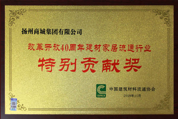 揚(yáng)州商城榮獲 “改革開放40周年建材家居流通行業(yè)特別貢獻(xiàn)獎(jiǎng)”